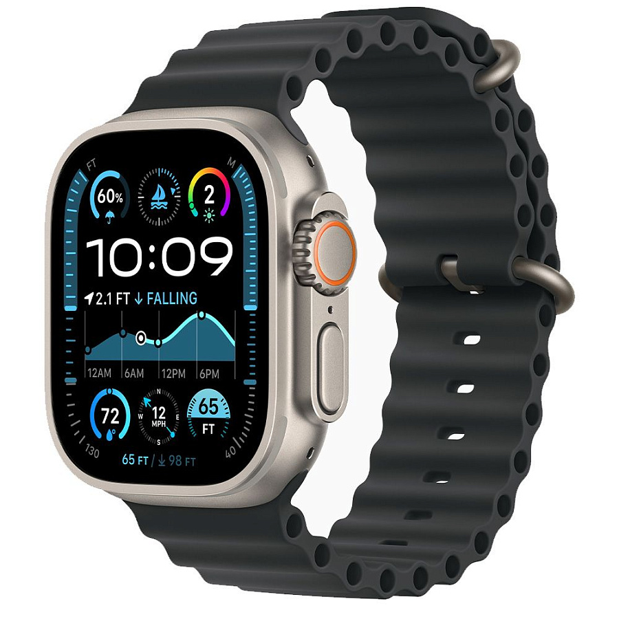 Дизайн и ощущениеКорпус из аэрокосмического титана — прочный, как твоя решимость. 49 мм — всё те же габариты, но внутри — обновлённый чип S9 SiP. Дисплей стал ещё ярче — до 3000 нит. Солнце светит — ты всё равно видишь маршрут. Тот же брутальный стиль, всё те же ремешки на выбор — Alpine Loop, Trail Loop, Ocean Band. Выбирай своё приключение.