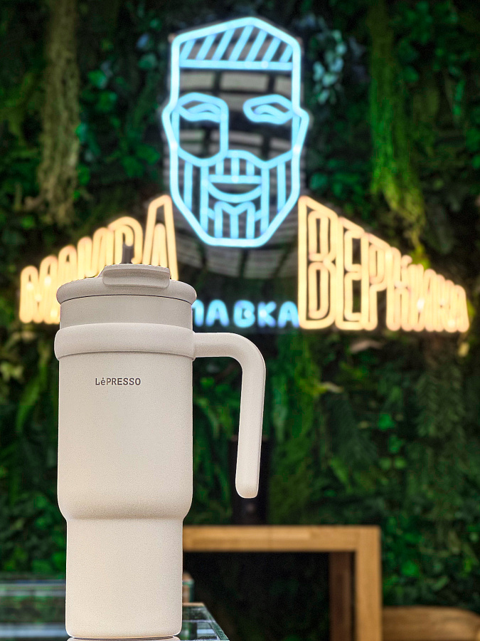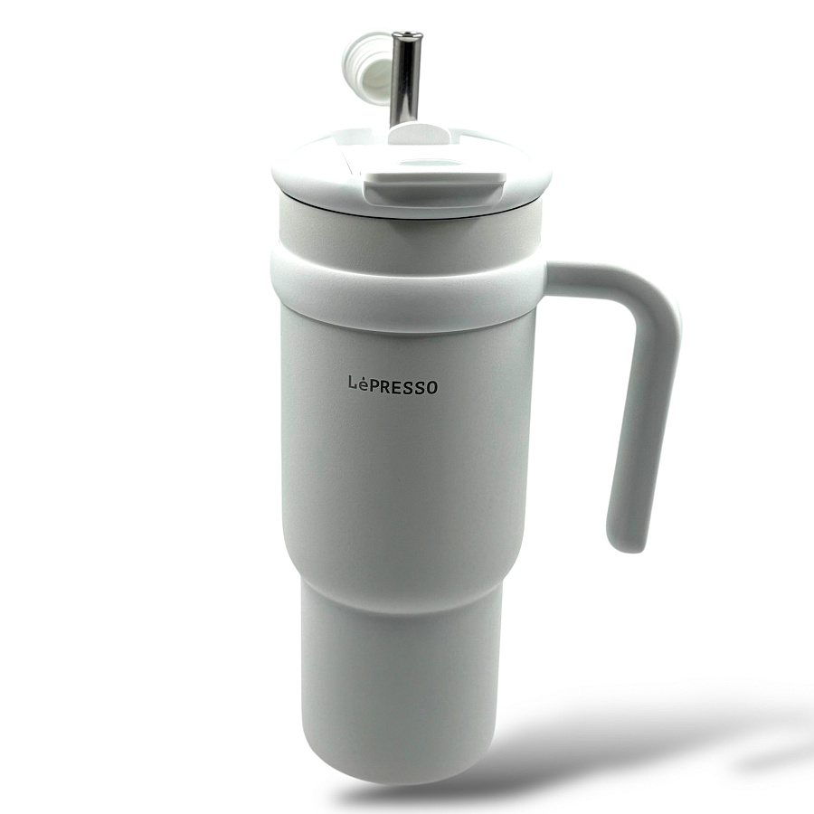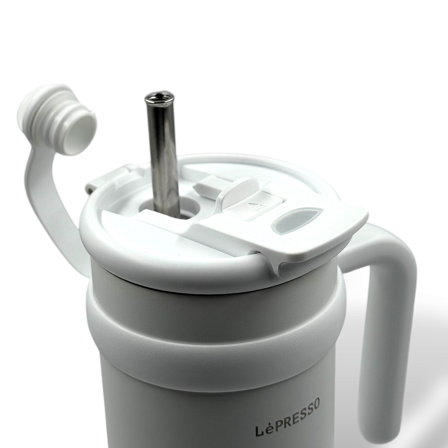 Кружка LePresso с трубочкой из нержавеющей стали, 900 мл, белый