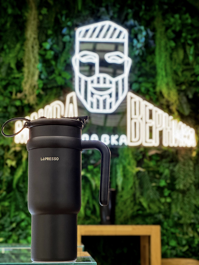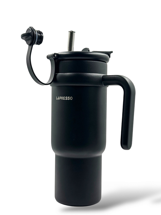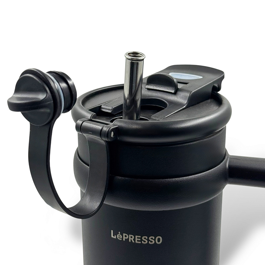 Кружка LePresso с трубочкой из нержавеющей стали, 900 мл, черный