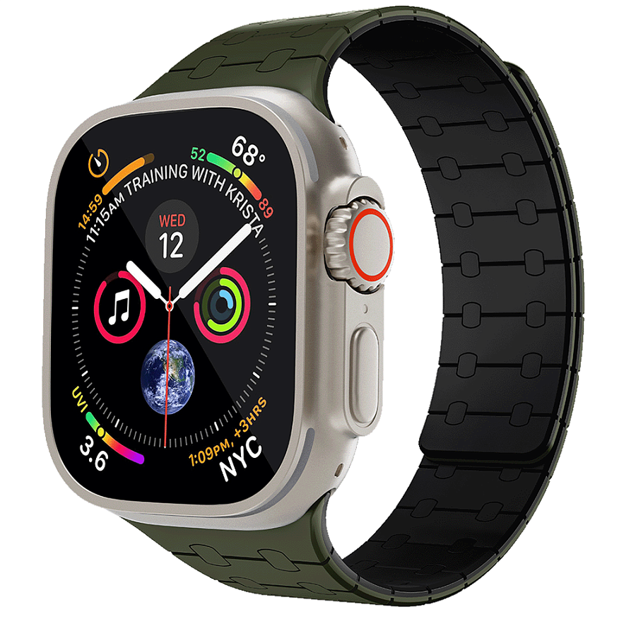 Ремешок Levelo RoyalLink для Apple Watch 44/45/49 мм, силикон, зеленый